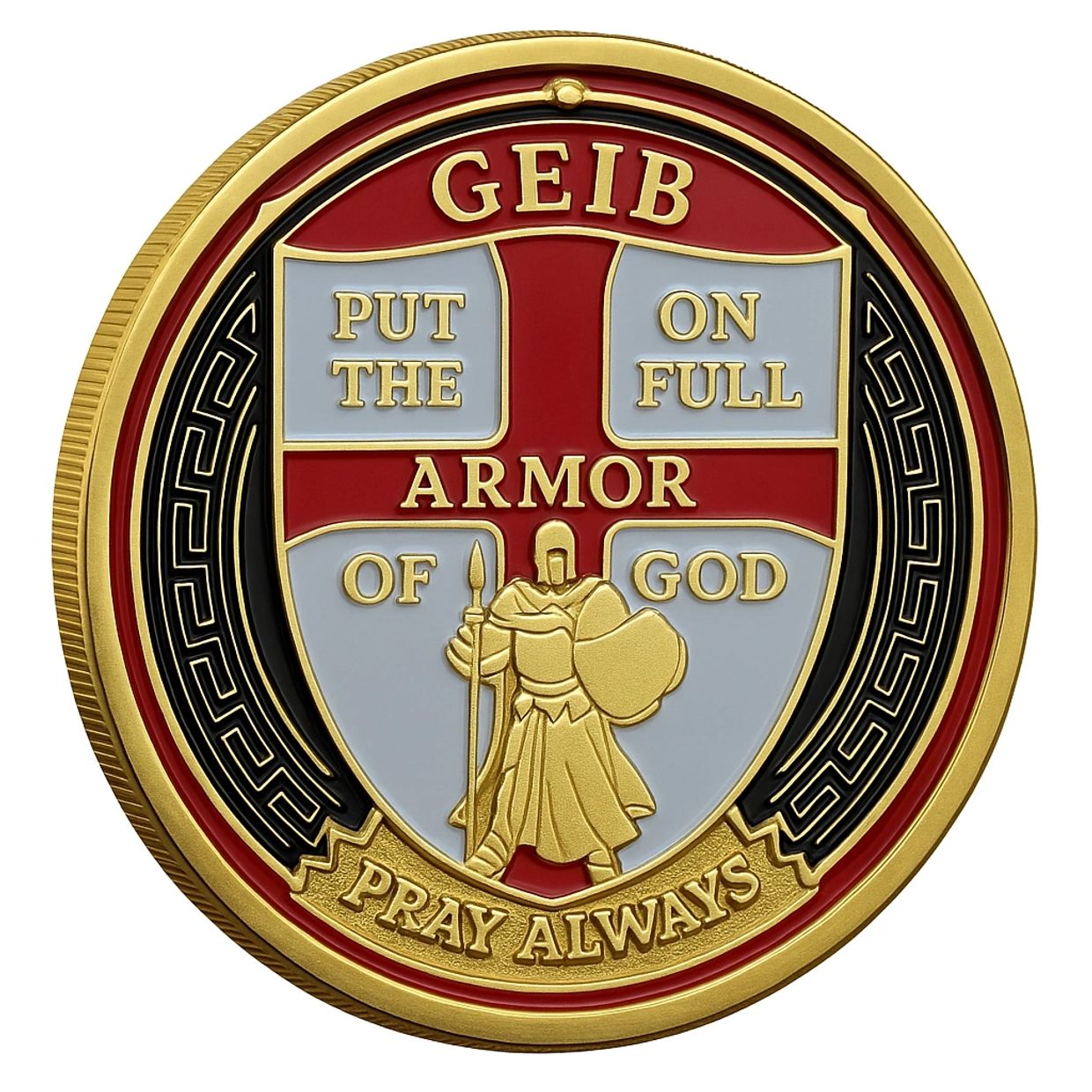 This sacred GEIB medallion is a symbol of divine fortitude, spiritual protection, and unwavering truth. Bearing the sacred inscription “Put On the Full Armor of God – Pray Always”, it serves as an emblem for all GEIB Agents, Officers, and Ecclesiastical Guardians who walk the path of light, law, and sacred defense.